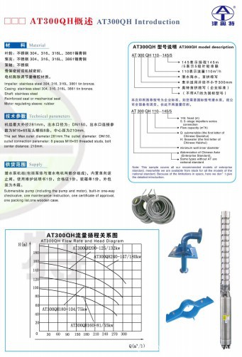 不锈钢系列深井潜水泵,是引进国外泵业公司的,制泵技术生产的高性能耐磨电泵。动力部分配用目前国际先进技术生产的油浸式,水浸式不锈钢潜水电机、水浸电机对水质绝对无污染,是当前国内外深井泵中之精品。选用优质不锈钢外壳、轴芯、联轴器、钢倒流壳,全新“浮动式”结构叶轮在工作期间对电机无轴向力。