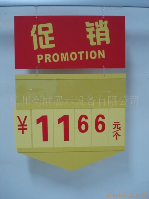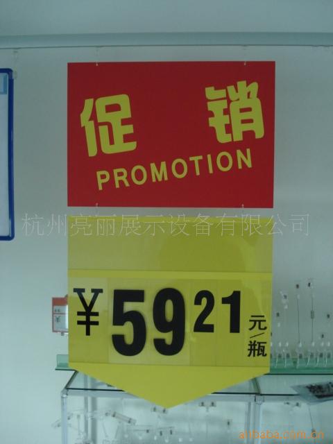 杭州亮丽超市展示设备有限公司位于杭州市余杭区临平北沙西路,是一家以促销道具销售为主的公司 , 产品广泛用于商场、超市、便利店、及专卖店的服装标价促销。 产品有:货架标签条、促销海报杆(挂画轴)、塑料夹(拇指夹)、 L 架、标价框、特价翻牌、生鲜插牌、小黑板、海报保护膜、有机玻璃制品、服装标价牌、帐蓬、太阳伞等各类促销用品。