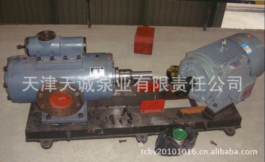 3QGB系列三螺杆泵是一种容积式泵,显著的优点是结构简单、体积小、允许高转速工作平稳可靠、压力脉动小、流量稳定、噪音低、效率高。正是利用螺杆啮合原理,依靠旋转的螺杆在泵套内相互啮合,把被输送的介质封闭在啮合腔内,沿螺杆轴向连续匀速地推至排出口,为系统提供稳定的压力。三螺杆泵适用千输送各种无腐蚀性油类及类似油的液体,输送液体的粘度一般为3 0~760mm2/s。高粘度介质可通过加温降粘后输送,其温度一般不超过350。C。3QGB系列三螺杆泵采用铸钢制成,有保温和不带保温两种,建议高粘度介质采用保温结构的螺杆泵。泵的进出口方向,在通常情况下按图示方向出厂即右进左出。如用户有特殊要求也可做成左进右出。三螺杆泵广泛应用于石油、化纤、冶金、机械、电力、机床、船舶、玻璃、公路等各行各业。三螺杆泵适用于输送燃料油、润滑油、液压油、重油、沥青及其它类似油的润滑性液体。该泵密封性能好,采用机械密封,根据用户不同的介质,机械密封磨擦件选用不同的材质,对于高粘度介质,选用机械强度高、耐磨性好的硬质合金材料,保证了高温下的密封性能。