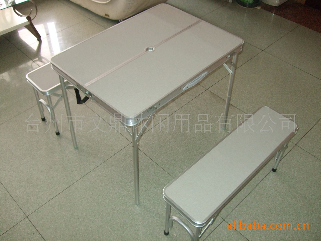 该桌子外观只有手提箱大小,展开后,就是一张联体的桌子跟四张凳子。方便携带,折叠起来的尺寸:长90公分 X 宽39公分 X 厚12公分。打开与收起桌子一分钟不到就可完成。 无论是野外朋友聚会或野餐;还是户外展示活动、促销宣传活动;或是大型户外会展与联艺活动,该产品都可以随你的布置轻松摆放,开收自如。 特别是有车一族,带着家人到郊外运动、野餐,时常为没凳子、桌子而烦恼,特别是下过雨之后,铺报纸不行,铺朔料薄膜也座得不舒服,还要受小虫子的干扰,连座的地方动没有! 现在起,这些将不再是困绕我们的问题! 本厂家的产品质量保证,能承受近千斤的重量,材质可分为蒴料面,宽竹面,铝合金,杉木面.....色彩最全,款式最多,任君选择. 欢迎各企事业单位\商家订购,合作,共同开发市场.