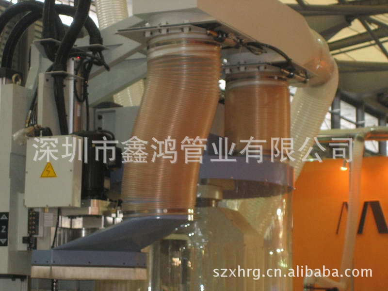 鑫鸿牌pu耐磨输料软管,工业集尘pu管,pu钢丝软管通常用于抽吸场合,特别适用于:高流动速率磨损固体,例如粉末,碎屑和粒状物;用于气态和液态介质;用于真空工业除尘,粒状物体输送系统,印刷机械,吹风机和压缩机;作为耐用的的保护管使用。使用寿命为普通PVC管的10倍左右。价格是进口同类软管的1/3左右,除了外形美观有所差异,功能效果基本相同。
