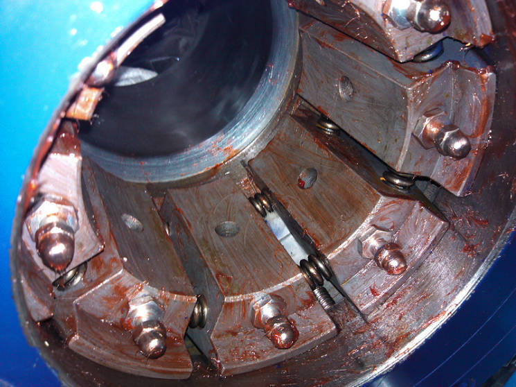 1.采用八瓣式条宽等分、间隔均匀单斜面模块,保证机械移动平稳、回程快速;