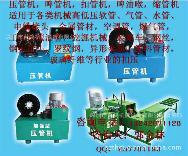 台鸿機械設備有限公司是华南第一大 压管机 厂家,提供优质的 ,产品遍布全国25多个省市自治区,联系电话13242971128郭金林QQ957781193.