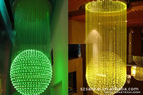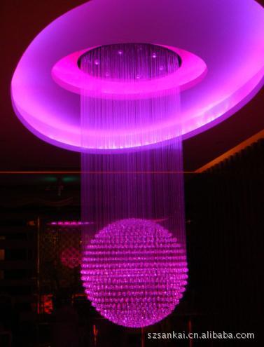 光纤灯纤是一种特殊的照明产品,是夜总会、酒店、ktv等夜总进行装饰照明最成功最理想的方案。主要颜色有红、黄、绿、蓝、紫、白、浅蓝、粉红八色。同光源机配合使用,可匀速周期变化,可固定一色,也可随音乐节奏而同步变化。 光纤灯饰主要应用在酒店、夜总会、酒吧、ktv、咖啡厅、disco等高档娱乐、休闲场所.优点是具动态变化,颜色有多样性,设计具独特性、唯一性,可完全按照放置的区域和您的创意来设计