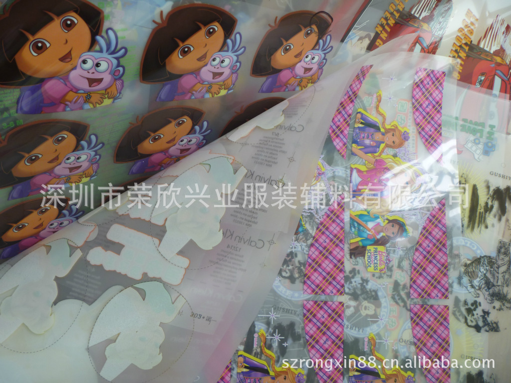 转印温度150-160℃,转印时间13-16秒,撕纸方法:冷撕!荣欣服装辅料全部材料采用进口环保材料联系Q:258511365,电:18926561297