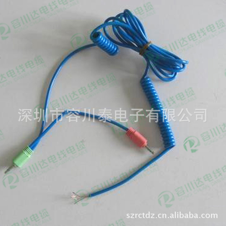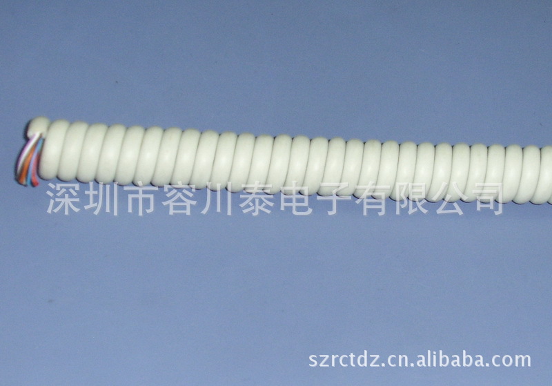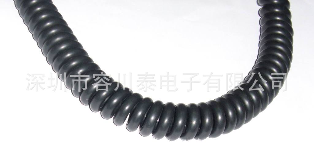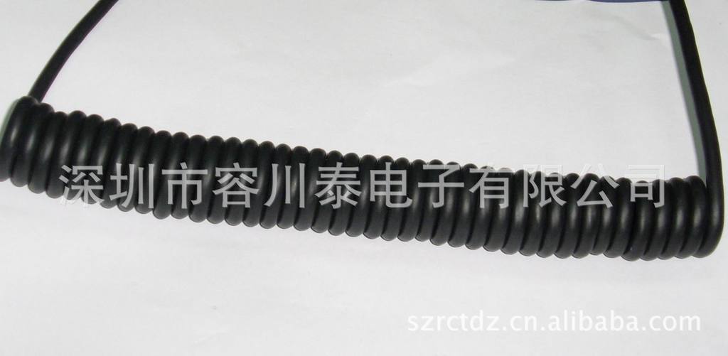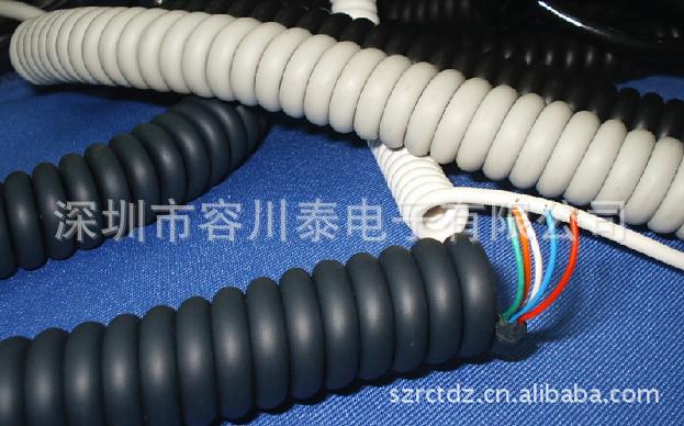 弹簧线(又叫弹弓线、电话线、螺旋线、卷线、伸缩线、曲线),按材质可分:PU弹簧线、PVC弹簧线、PE弹簧线,产品大致可分为插头弹簧线、塑胶弹簧线、编制屏蔽弹簧线、点烟器弹簧线、DC头弹簧线等,弹簧线是一种利用可伸缩性来工作的设备连接线。一般用TPU电缆绕制而成。用以控制可移动设备运动的电连接、可在短时间内迅速回弹,一般是由TPR/TPU/TPE/ PVC电缆绕制而成。而采用最多的是PU/TPU,PU/TPU是热塑性聚氨酯( TPU )弹性体 ,是无毒环保的高分子聚合物,具有其它塑料材料所无法比拟的强度高﹑韧性好﹑耐磨﹑耐寒﹑耐高温、耐油﹑耐水﹑耐老化﹑耐气候等特性 ,同时他具有高防水性透湿性﹑防风﹑防寒﹑抗菌﹑防霉﹑保暖﹑抗微生物、环保型柔性电缆、抗紫外线以及能量释放等许多优异的功能;它的硬度范围 50a-82D ,用传统的热塑性塑料的加工方法,如注塑,挤出,压延,吹塑, 熔铸成型法等,均可方便地加工该产品。 |