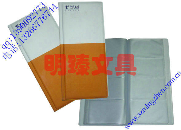 专业按客户要求定做名片册,定做单格名片册/定做二格名片册/定做三格名片册/定做四格名片册,软皮材质,档次高,手感好,是最佳的礼品和赠品。深圳市明臻文具有限公司竭诚为您服务。