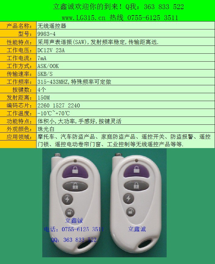 摩托车、汽车防盗产品、家庭防盗产品、遥控开关、防盗报警、遥控门锁、遥控电动卷帘门窗、工业控制等无线遥控产品等等.