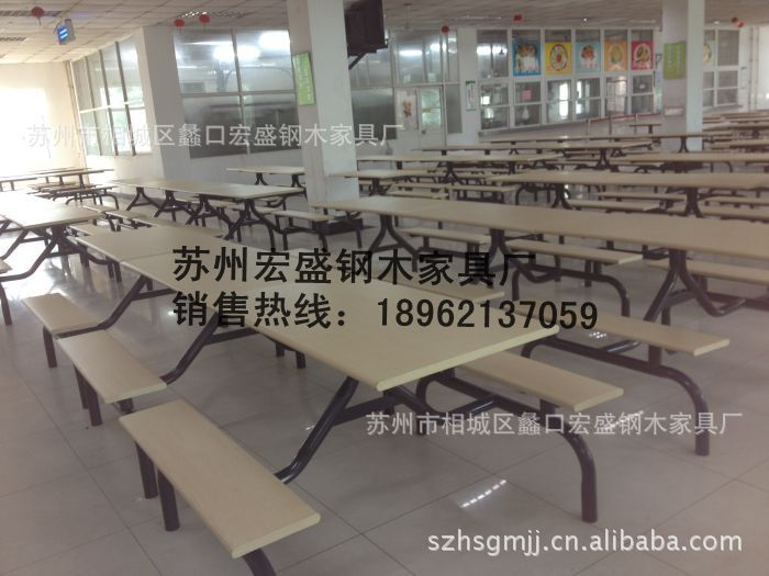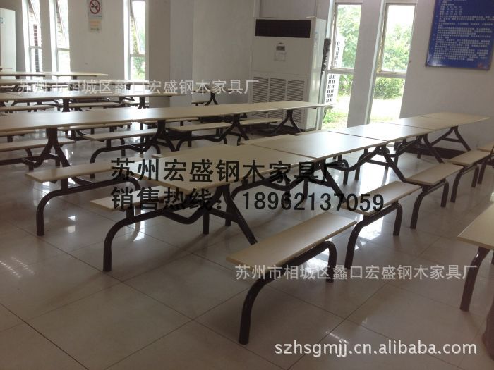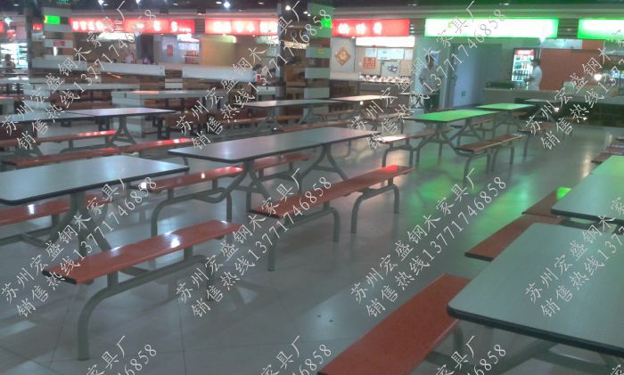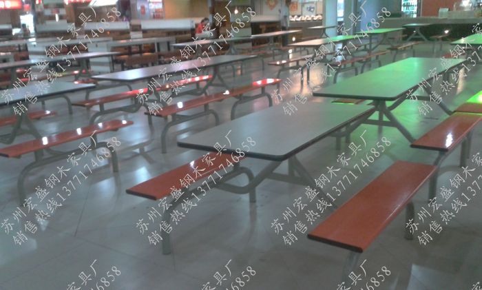 【产品材质】:四人位规格120(长)X60(宽)X75(高)X2.5(面板厚度)CM,主管采用5cm直径的圆管,厚度1.5mm,面板材质为优质加耐磨纸两元边防火板,凳面材质为防火板,钢架外处理喷塑。