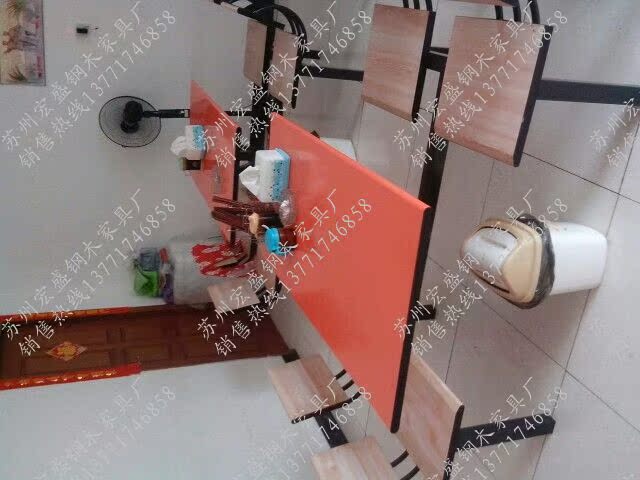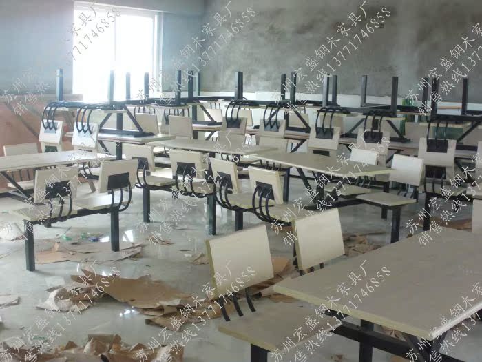 【产品材质】:规格120(长)X60(宽)X75(高)X2.5(面板厚度)CM,主管采用5cm直径的方管,厚度1.2mm,面板材质为优质加耐磨纸两元边防火板,凳面材质为优质加耐磨纸防火板,钢架外处理除油、除锈、磷化静电喷塑,高温固化而成,产品坚固耐用,大方美观。