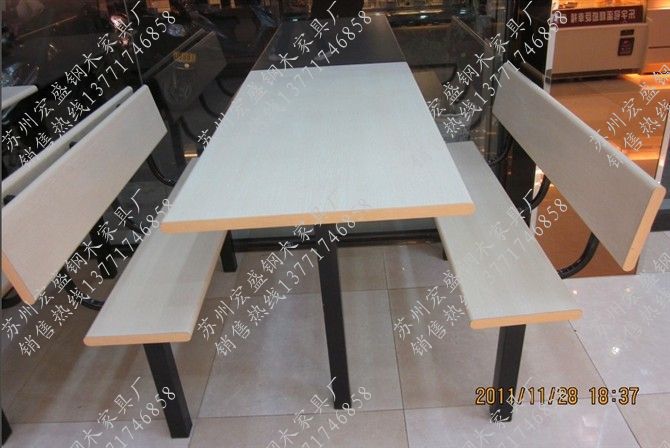 【产品材质】:规格120(长)X60(宽)X75(高)X2.5(面板厚度)CM,主管采用5cm直径的方管,厚度1.2mm,面板材质为优质加耐磨纸防火板,凳面材质为优质加耐磨纸防火板,凳面规格110X24X45X2.5CM,钢架外处理除油、除锈、磷化静电喷塑,高温固化而成,产品坚固耐用,大方美观。