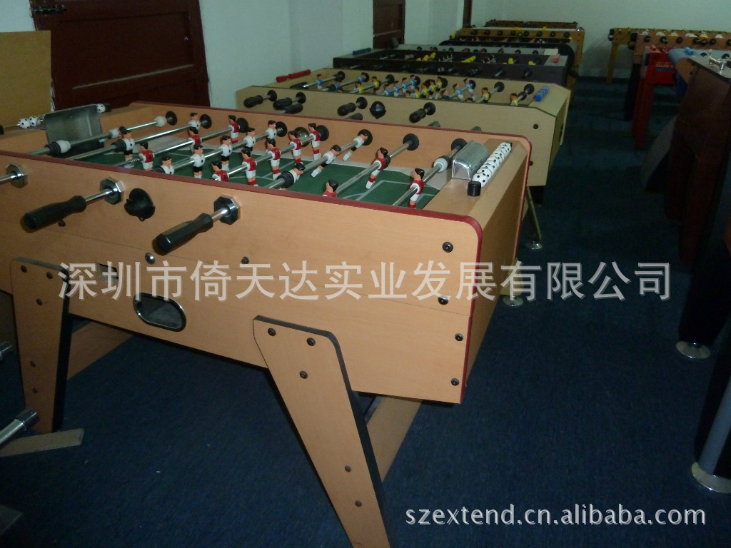 其游戏规则与足球场上踢足球一样,不同点只是由游戏者操作横杆,帮助球员将球踢进龙门得分。游戏者2~4人,将小足球由台上中间小孔投入、发球,游戏者分立于台桌两边,操作横杆踢球,根据球的动态操作正方横杆,运用技巧控制力度及方向,将球踢入对方龙门得分即可。游戏胜负可依时间或进球数于赛前游戏者协议订之。此运动由于占地面积不大,可在各场所摆设:家庭、娱乐场所、酒吧、会所等可无所不在,陪你和朋友一起度过欢乐时光。