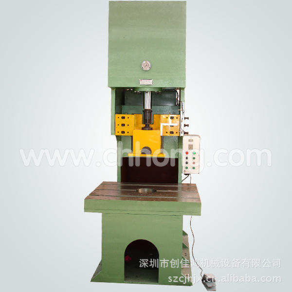 | 设计特点: | 1、 本机种之设计采用四柱式开放空间,可适合不同产品之加工,其工作高度与工作面之大小,可依客户实际需求制作。 2、 模具头之设计,采装卸空容易之特点,配合四柱式台面,可自动互换不同产品之生产,适用于多种类少数量之工作。 3、 油路设计简便,马力需求小,维护保养容易,也可依客户的工作要求,变更回路设计,达到工作之目的。 4、 桌面下方均装加轮座,可轻便移动机台,可省时省力,效率高。 5、 操作设计周全,双手按钮,设有紧急、急升按钮,脚踏开关及点动上升、下压;具有下压计时、保压之功能;速度、压力均可调整;可加装电子眼装置。 6、 本机台实用于成型、铆合轴心、压入、冲孔、折边、打印、整平等。 7、 出力3T-100T供选择,也可依据客户需求特殊订制。 |