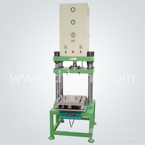 1、以压缩空气为动力源,操作简单。 2、没有油压系统特机时,所产生之噪音,可节省电力省消耗,降低生产成本。 3、利用气油增压原理,达到动作速度快,高出力的需求。 4、出力之调整容易,只要调整所压压力,就能达到需要的出力,下压计时,计数均调整方便,此机台有自动送料功能。可寸动可加装光电护手保护。 5、机台结构坚固,操作容易,轻巧方便,符合工作效率。 6、多功能用途适用于压入、冲孔、铆合、装配、切断等。 7、柱式开放空间设计,特殊规格之需求,可接受订制。 8、出力3T-30T供选择。 规范 规格 | CH109E-3T | CH109E-5T | CH109E-10T | CH109E-15T | CH109E-20T | 理论出力 | 3T | 5T | 10T | 15T | 20T | 行程范围 | 100mm | 100mm | 100mm | 100mm | 100mm | 增压行程 | 5mm | 5mm | 5mm | 5mm | 5mm | 最大工作高度 | 250mm | 250mm | 250mm | 250mm | 250mm | 工作台面积 | 350χ230mm | 350χ230mm | 350χ235mm | 400χ300mm | 400χ300mm | 来回次数/分钟 | 约20次 | 约20次 | 约20次 | 约20次 | 约20次 | 操作压力 | 0.4 - 0.7Mpa | 0.4 - 0.7Mpa | 0.4 - 0.7Mpa | 0.4 - 0.7Mpa | 0.4 - 0.7Mpa | 轴孔尺寸 | φ25χ40L | φ25χ40L | φ25χ40L | φ25χ40L | φ30χ40L | 电源 | AC220V单相 | AC220V单相 | AC220V单相 | AC220V单相 | AC220V单相 | 操作种类 | 自动/手动 | 自动/手动 | 自动/手动 | 自动/手动 | 自动/手动 | 操作方式 | 双手操作 | 双手操作 | 双手操作 | 双手操作 | 双手操作 | 本机重量 | 约120kg | 约140kg | 约160kg | 约200kg | 约240kg |