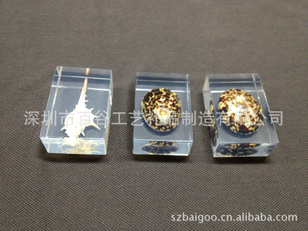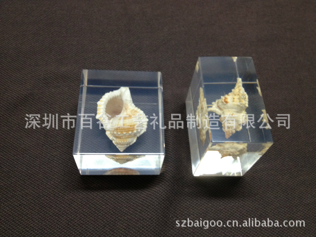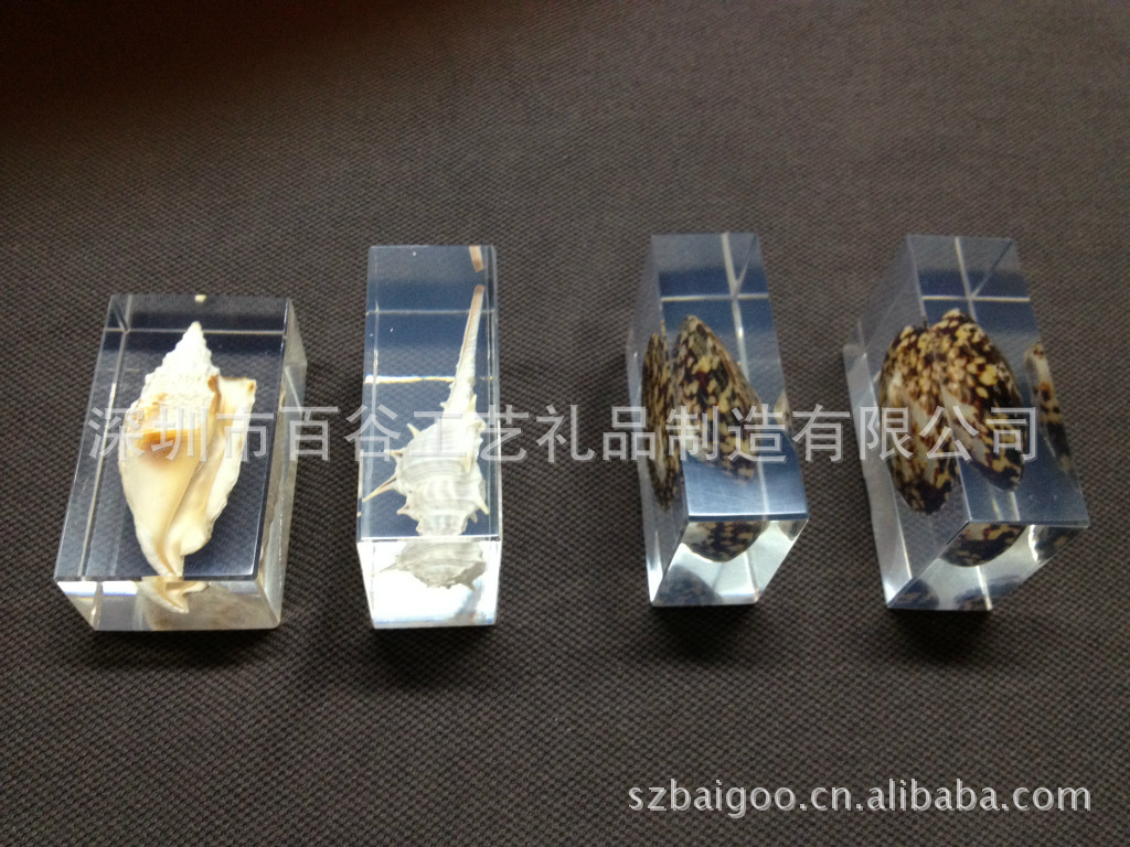 水晶胶树脂工艺介绍:水晶胶工艺品是一种液体高级不饱和树脂固化后的产物,灌注入特定的模具固化成型后经打磨、抛光等工序后成为成品,可塑性强,透明度高,可灌制及加工成各种形状,也可调配有夜光效果、透明和不透明的各种颜色等等,最大的特点是还可以把各种金属、塑胶、沙漏、相片以及印刷各种文字、图案在里面,是各种工艺品、纪念品、促销品的理想选择。