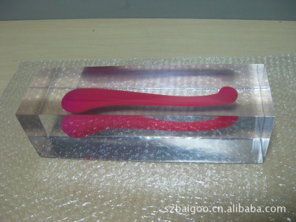水晶胶树脂工艺介绍:水晶胶工艺品是一种液体高级不饱和树脂固化后的产物,灌注入特定的模具固化成型后经打磨、抛光等工序后成为成品,可塑性强,透明度高,可灌制及加工成各种形状,也可调配有夜光效果、透明和不透明的各种颜色等等,最大的特点是还可以把各种金属、塑胶、沙漏、相片以及印刷各种文字、图案在里面,是各种工艺品、纪念品、促销品的理想选择。