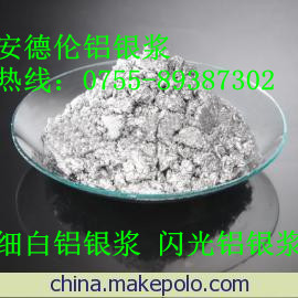 安德伦生产的铝银浆,质量好,价格实惠。产品通过SGS PAHS ROHS多项检测标准 无铅无毒 环保 主要生产铝银浆铝银粉、铝银浆具有耐高温,耐酸碱,金属效果显著,质量稳定,库存量大,供货周期短,产品包括细白银浆(粒径有5um-14um)、闪光银浆(粒径有16um-80um)、仿电镀银浆(粒径有2um-13um)、水性银浆(粒径有5um-60um)400目铝银粉、800目铝银粉、1000目铝银粉、1200目铝银粉、1500目铝银粉等系列产品。