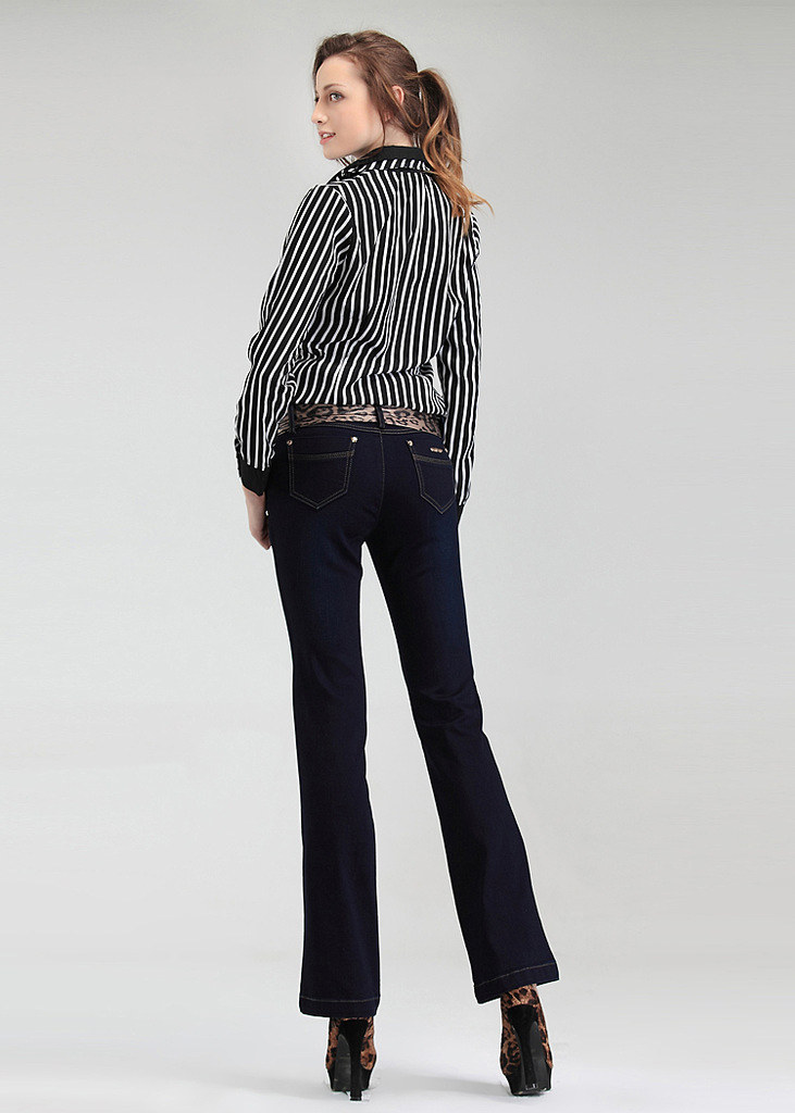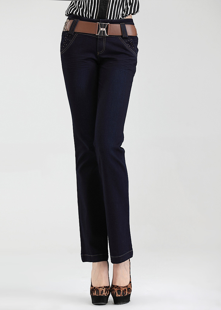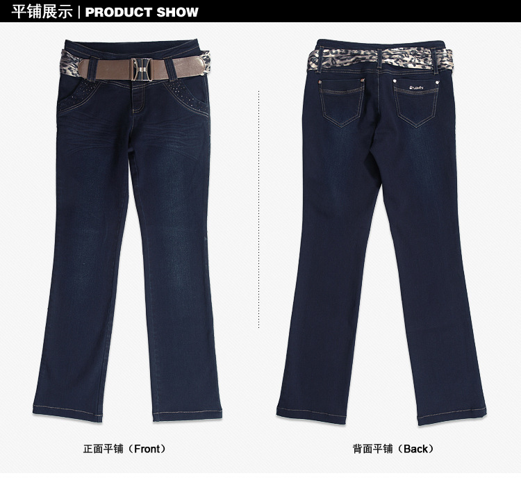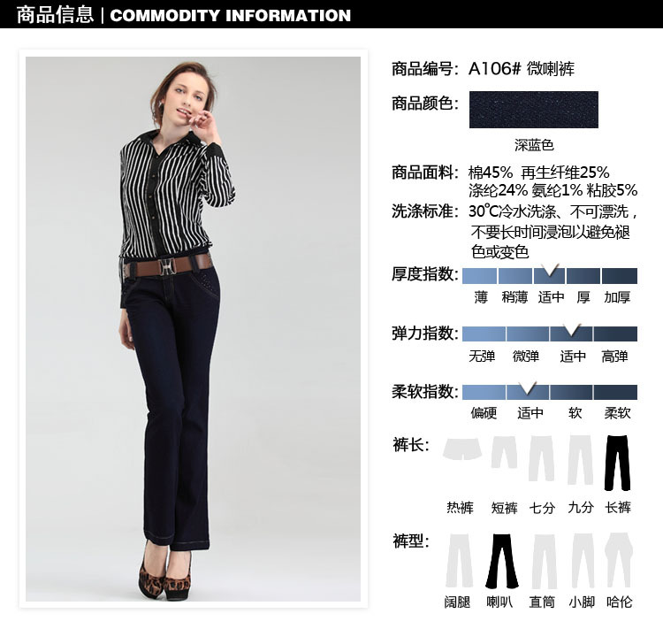 素度 新款中腰女式牛仔裤 修身简单百搭大码微喇女裤长裤A106