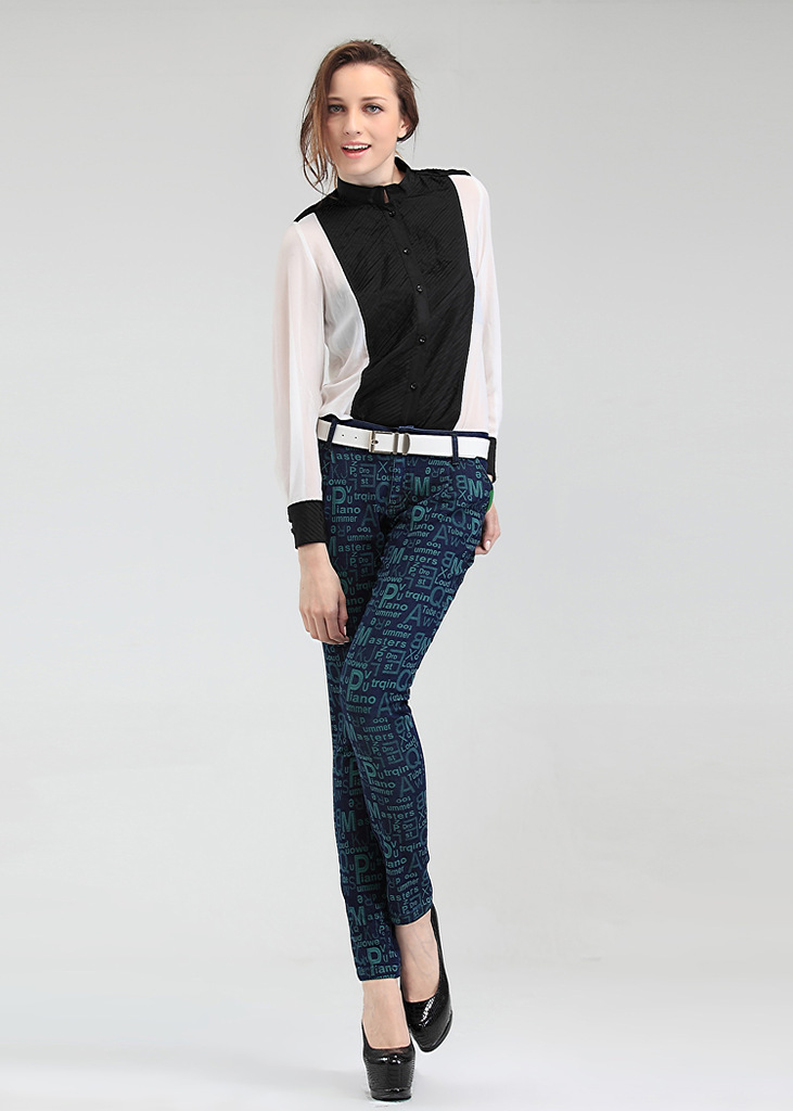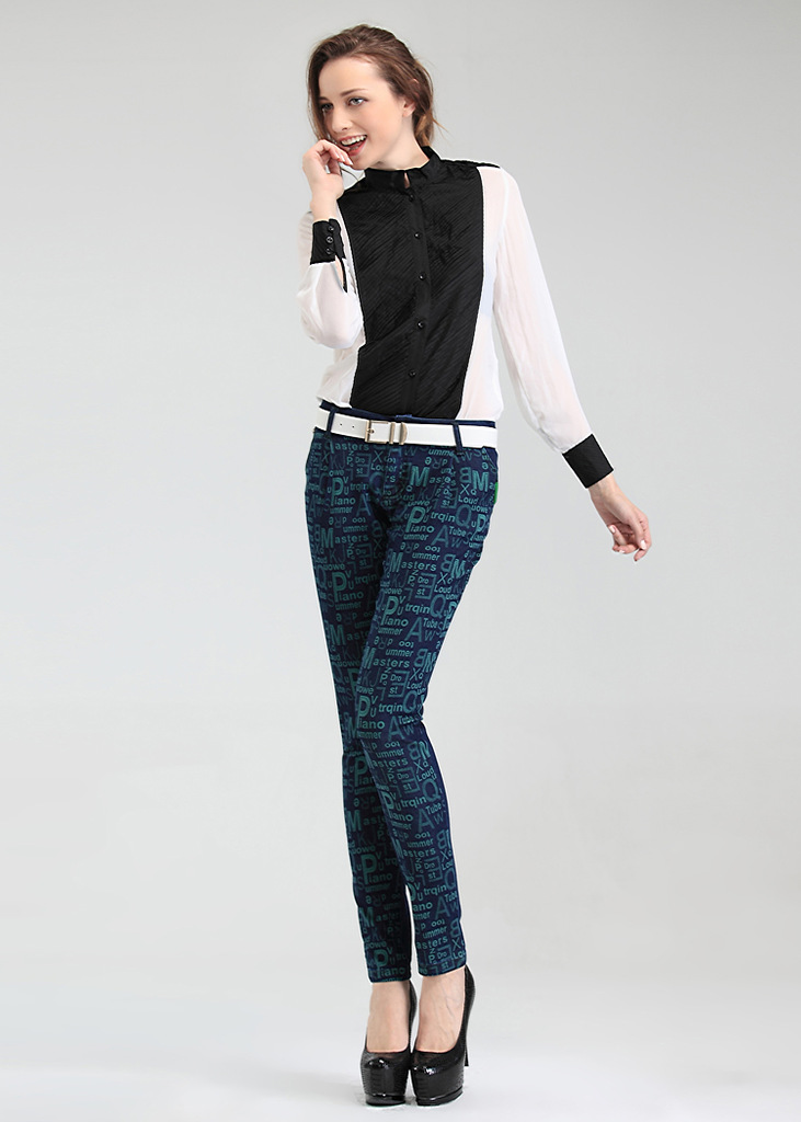 素度 素度春季新款韩版圆点女式牛仔裤 印波点小脚长裤子A109