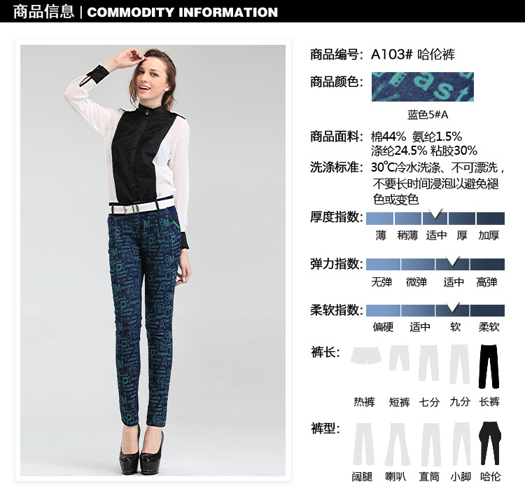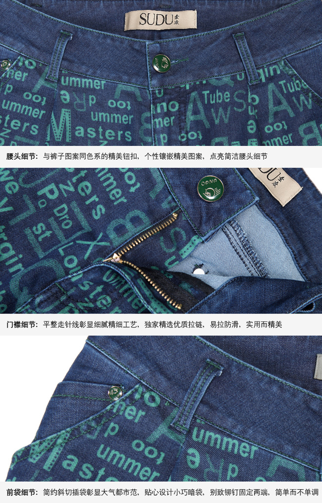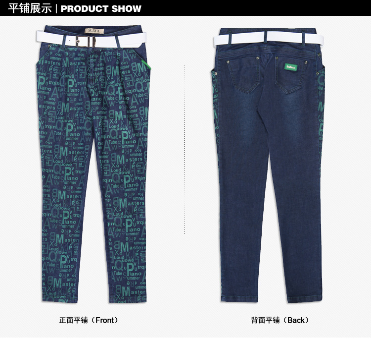 素度 素度春季新款字母印花牛仔女时尚个性休闲小脚哈伦裤A103