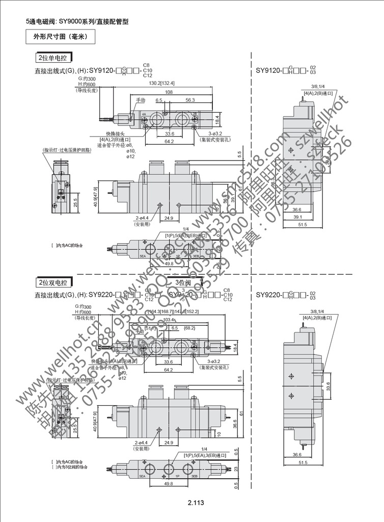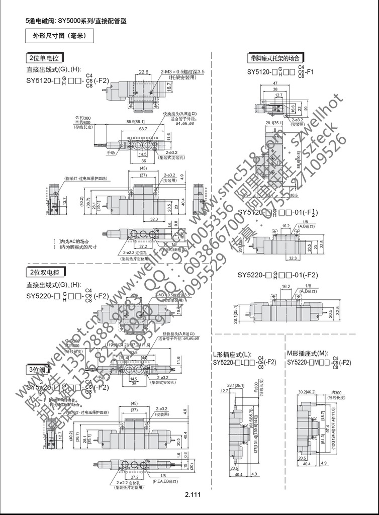 SMC 5通电磁阀 SY5120-5LZE-C6,SMC 5通电磁阀 SY5120-5LZE-C4(mm)mm