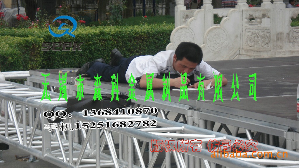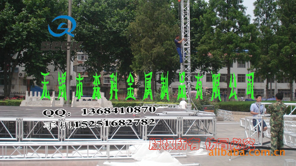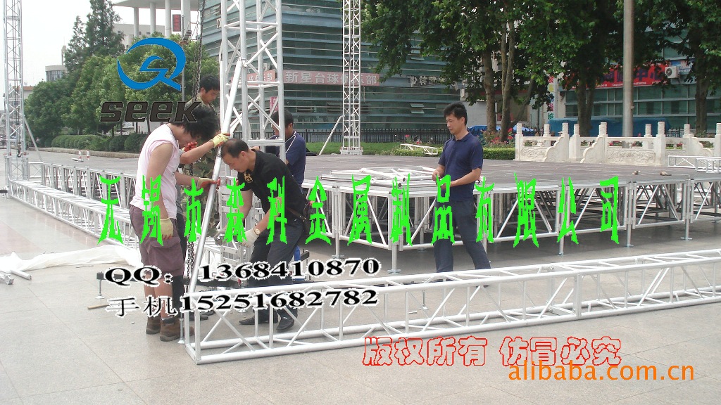 答:本公司是专业生产铝合金灯架,桁架,舞台(专利),铝合金舞台,折叠舞台,雷亚架,篷房,脚手架等系列产品的大型综合型实体公司,诚信经营。并且在工商局都可查到,在阿里巴巴也是诚信通会员,产品生产并出口各国,厂址位于无锡市锡山区东港镇阳光工业园,客户可以本人或委托朋友来工厂实地考察,建立信任。一直以来,国内浙江、上海、江苏、山东、福建、湖北、湖南、安徽、河南、陕西、广西、新疆等许多朋友均从本公司购得满意的产品。