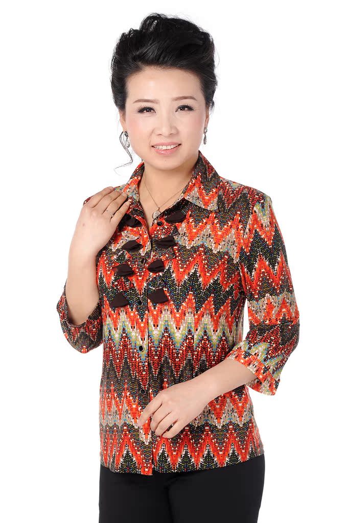 爆款批发 中老年大码女装 七分袖加大码 仿天丝妈妈装衬衫 热卖