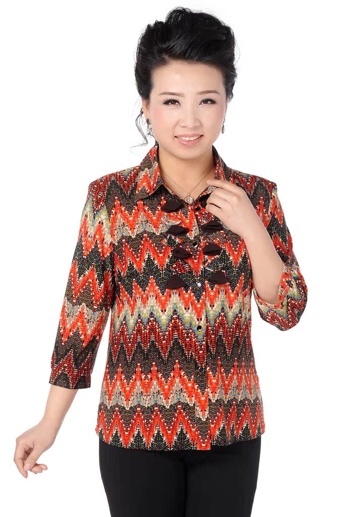 混批高档中老年女装妈妈装春夏新款 大码女装 翻领七分袖衬衫上衣