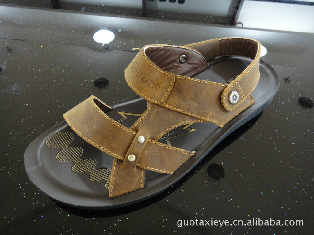 2012新款 国踏休闲凉鞋 头层磨砂皮 连邦注塑双用沙滩凉拖鞋