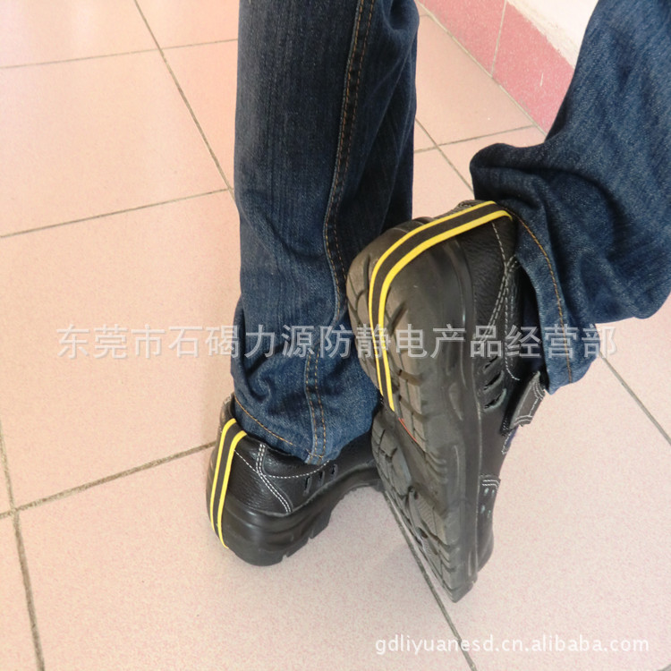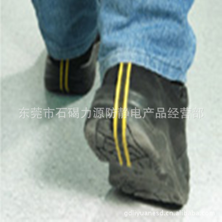 颜色为明黄色的中间带有导电济,适用于男鞋也适用于女鞋.同耐用的脚跟接地鞋套一样,它也需要在ESD地板上使用才能发挥作用.