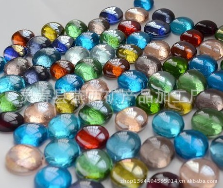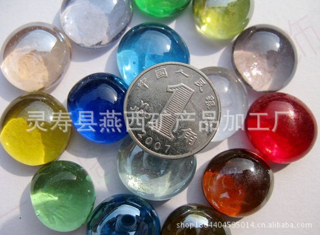 该产品本体着色、抛光而成、剔透度好、颜色齐全、规格品种较多如16mm、20mm。是做工艺产品的首选材料。我们可提供各种规格、各种颜色,可按客户要求制作,生产不同尺寸,不同颜色和花色的玻璃扁珠,有意者请联系!