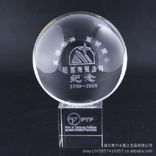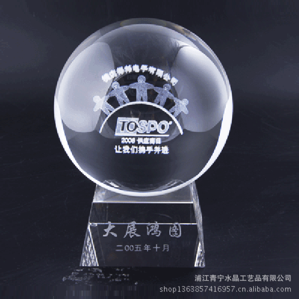 浦江青宁水晶奖杯批发厂位于赋有水晶之都、书画之乡的浙江浦江。是一家集专业设计、生产、加工、销售为一体的工艺品厂。本厂生产的水晶系列有水晶奖杯、奖牌、水晶内雕,水晶深雕,水晶纪念品,水晶影像等礼品。
