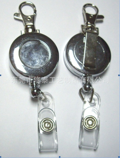 主要产品介绍:产品由ABS塑胶或合金或搪胶外壳组成,外表可以电镀或喷油;颜色可根据客人提供的任意PANTONE色号生产;产品内置高弹力高性能发条(弹簧),强力尼龙绳(或钢丝绳)自由伸缩可达到900MM,(电脑屏幕擦下有贴头,粘贴于屏幕边缘,来回清洁屏幕,伸缩自如)背面装金属夹子或锷鱼夹,能自由或旋转活动;正面可粘贴或丝印客人指定样式的LOGO,下挂PVC条、手机绳、钥匙圈等配件,用来挂工作牌/厂牌/配套织带挂件/手机/钥匙等物件,具备宣传与广告、防盗防丢等多重功能。产品规格有:32mm*10mm、25mm*10mm、28mm*10mm、40mm*10mm、32mm*32mm*32mm(方形)、35mm*39mm*12mm(椭圆形)47mm*11mm、34mm*34mm(方形电脑屏幕擦)、34mm*32mm(圆形电脑屏幕擦)。