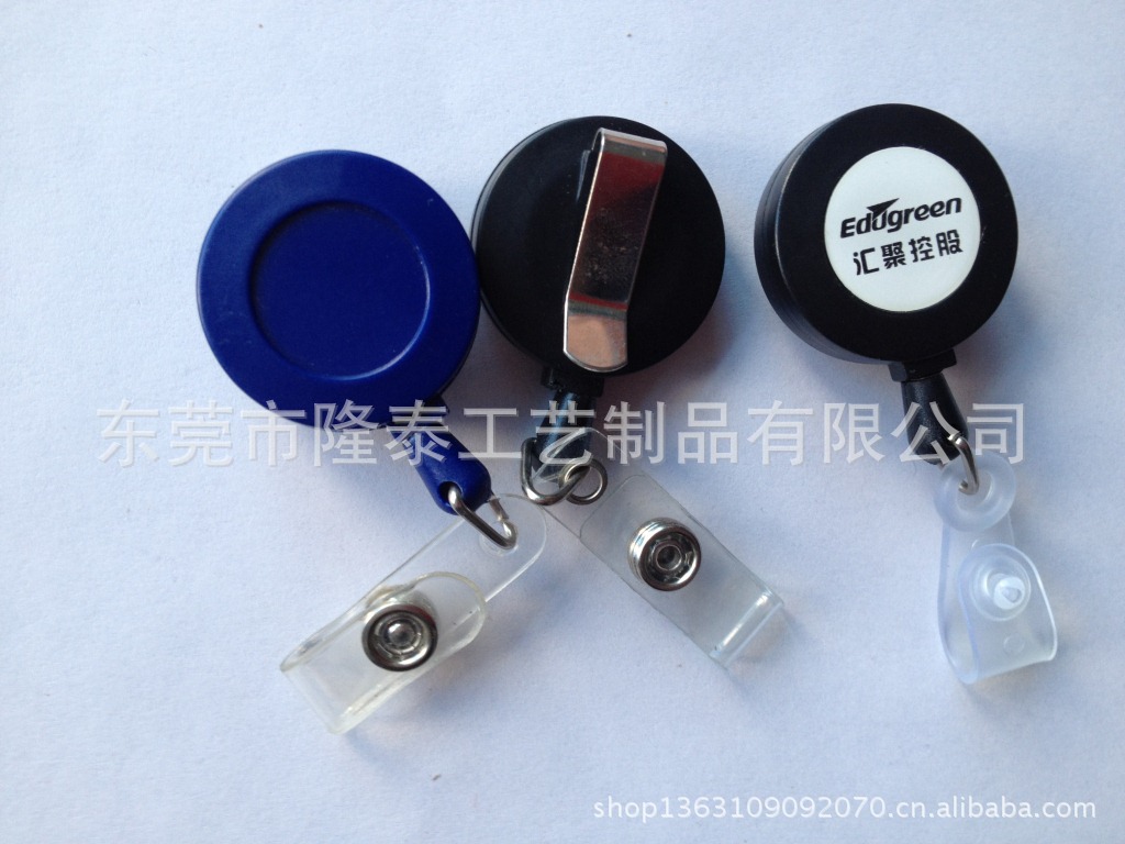 主要产品介绍:产品由ABS塑胶或合金或搪胶外壳组成,外表可以电镀或喷油;颜色可根据客人提供的任意PANTONE色号生产;产品内置高弹力高性能发条(弹簧),强力尼龙绳(或钢丝绳)自由伸缩可达到900MM,(电脑屏幕擦下有贴头,粘贴于屏幕边缘,来回清洁屏幕,伸缩自如)背面装金属夹子或锷鱼夹,能自由或旋转活动;正面可粘贴或丝印客人指定样式的LOGO,下挂PVC条、手机绳、钥匙圈等配件,用来挂工作牌/厂牌/配套织带挂件/手机/钥匙等物件,具备宣传与广告、防盗防丢等多重功能。产品规格有:32mm*10mm、25mm*10mm、28mm*10mm、40mm*10mm、32mm*32mm*32mm(方形)、35mm*39mm*12mm(椭圆形)47mm*11mm、34mm*34mm(方形电脑屏幕擦)、34mm*32mm(圆形电脑屏幕擦)。