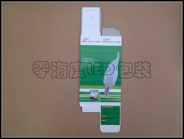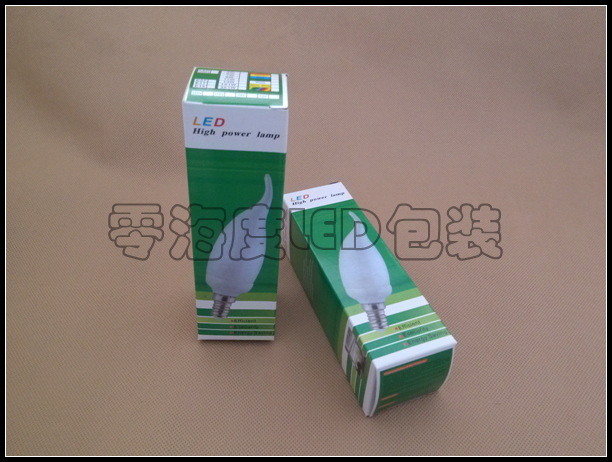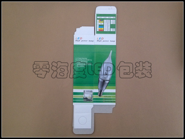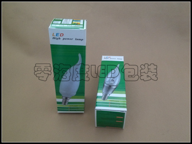 3W拉尾蜡烛灯包装彩盒为LED中性包装盒,无公司商标、名称、厂址跟联系方式。规格:42×42×140mm。