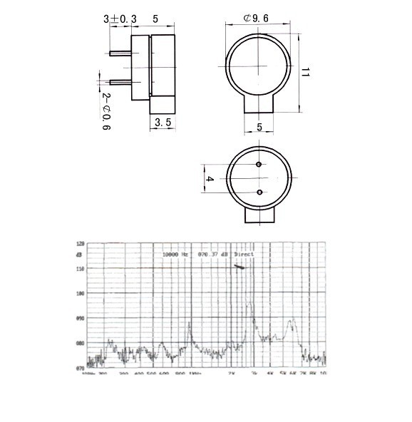 启盛主推款 9.6MM×5电磁式侧发音蜂鸣器 无源 插针1.5v 3v 5v