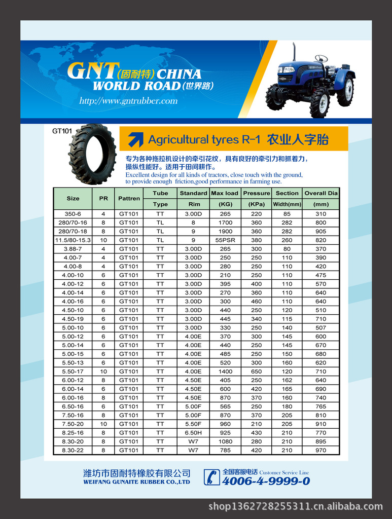 公司主要生产的人字花纹的农业轮胎的型号如下: