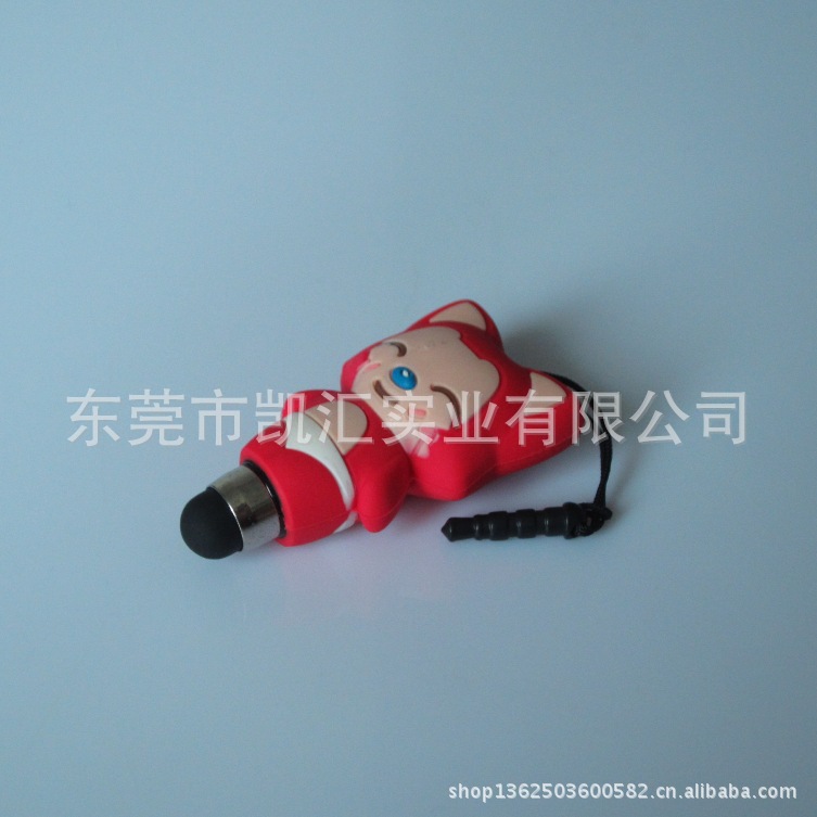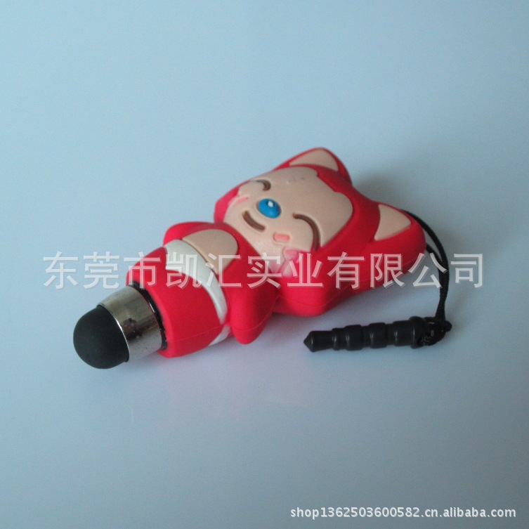 PVC软胶质感、可爱卡通造型电容笔。该触屏笔可用于各种触屏手机、平板电脑等设备,如iPhone,iPad,Android安卓等智能手机和电脑,同时也可作各类数码产品的手写笔。本品另附有3.5MM音频插口防尘塞,是一款功能合一、即实用又可作装饰点缀之用的工艺产品。