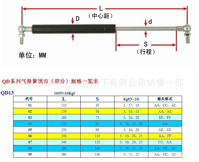 深圳供应气动弹簧,气动杆,支撑杆,QD系列,机箱机柜支撑杆。