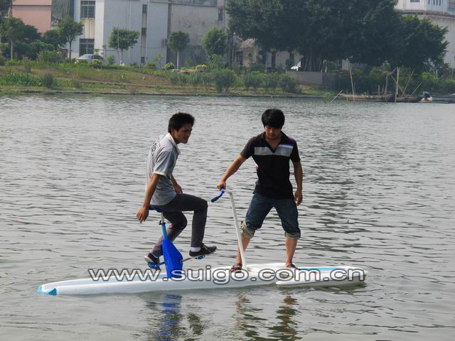 ④ 采用人工脚踏,齿轮传动螺旋桨驱动系统,不但保护环境,速度还大大提高,为 8—13km/h, 极具娱乐性。