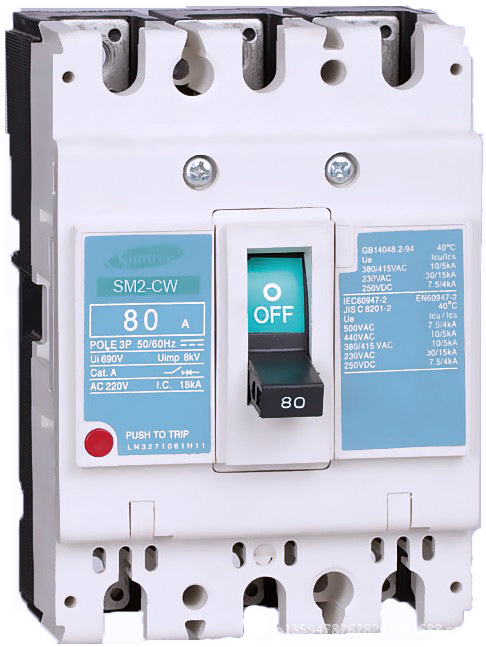 LM1(CM1)适用于50HZ,额定绝缘电压690V,额定电流工作电压至690V,额定工作电流从6A至800A的配电网络电路中,用来分配电能和保护线路及电源设备免受过载,短路,欠电压等故障的损坏。同时也能作为电动机的不频繁起动过载,短路,欠电压保护。该断路器具有体积小,分断高,飞弧短等特点,是用户使用的理想产品。断路器垂直安装亦可水平安装。接线方式可选择板前接线和板后接线及插入式接线。