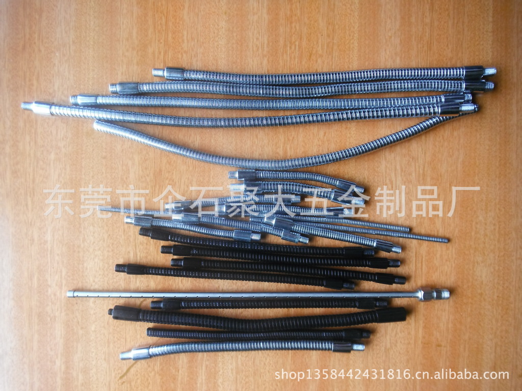 东莞市聚大金属定型软管制品厂(金属鹅颈软管专业生产商)是国内较早从事鹅颈软管机械及产品开发、生产、销售为一体的实力工厂,向社会各界提供生产各种型号金属软管,现与国内外众多著名厂商合作,获得众多客户好评,并引领了软管技术改进的步伐,是金属软管行业的佼佼企业,目前已拥有国内外众多客户,多次与世界知名公司(如夏普)合作生产各种软管,产品深受广大厂家客户的好评。能生产鹅颈软管、蛇管、灯饰软管、麦克风(话筒)金属软管、灯具金属软管、台灯金属软管、USB金属软管、弹簧软管、金属定型软管、点火枪金属软管、车载导航系列软管、iphone4、5系列软管等。软管尺寸在2.0mm—20mm范围内都可制作。也能进行软管类产品深加工,如台座开关、usb啤头、usb充电器、耳机线圈等。