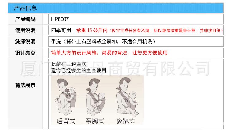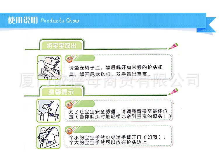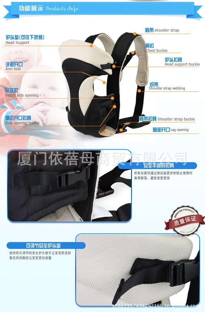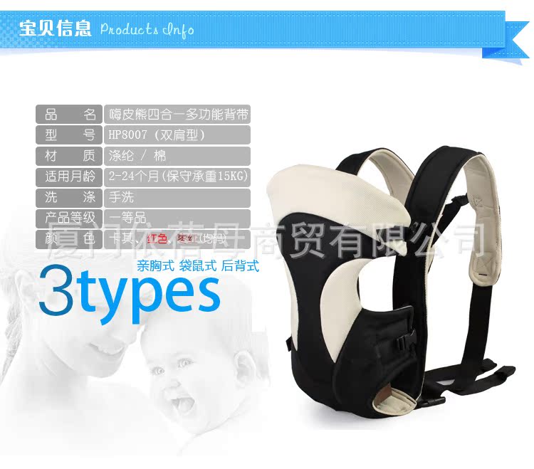 背带随身带着宝宝走动,这能开阔他的视野,使他有更多机会接触周围的人们,同时也促进其心智生理、人际交往及感情等的发展。
