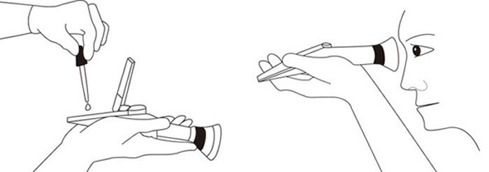 3)掀开盖板,用柔软绒布擦净棱镜表面,取1~2滴被测溶液滴于折光棱镜上,盖上盖板轻轻按压,读取明暗分界线的相对刻度,即为被测液体的浓度值及密度值。