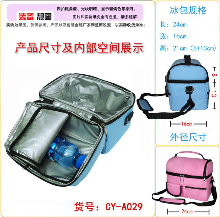 保温包、冰袋、冰包、也称无源冰箱,是一种具有高隔热、恒温效果的包 (具有冬暖夏凉作用),多用途保冷、保温、保鲜,采用优质材料制作,方便携带,适合喜欢驾车旅行、假日郊游、家庭野餐时使用,产品内层为珍珠棉覆合铝箔反光隔热层,提供良好的保温隔热效果,从此您可以在车上、户外携带冰镇饮料、冷饮等,不必再忍受温热的饮品!