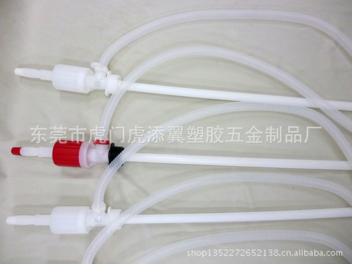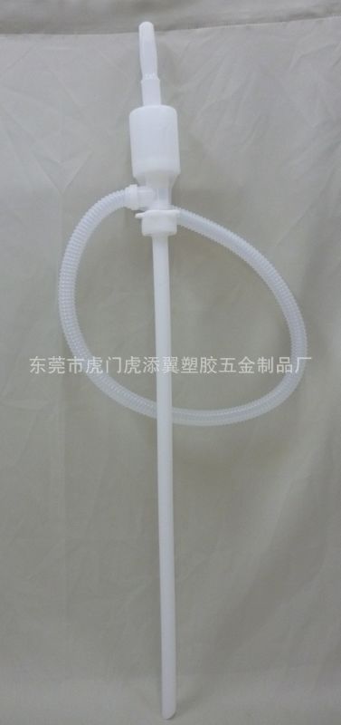 商品名:塑料油抽、油泵型号:大,中,小三款!注:我司有多款油抽现成模具,及完成品,可以直接生产,或供货。价格可面议,欢迎各界朋友前来参观洽谈,谢谢!!!使用功能:1,手动塑胶油抽(油泵)是高品质耐腐蚀产品.适用于淡水抽取,化工液体及大油桶与小油桶的抽取.。使用更方便,保管更卫生。使用注意:1、不可让儿童接触或玩耍。2、禁止抽取强腐蚀性液体。3、禁止拉扯产品配件。4、产品破损会导至液体外泄,产品失去使用功能。使用说明:1.使用前首先将产品顶端白色气阀帽扭紧。2.将产品吸入管浸入母容器液体中,输出管放入分装容器中。3.连续捏压泵心,直到泵出液体为止(分装容器液体面需低于母容器液体面高度。当母容器液体面低于分装容器液体面时,需手动抽出余下液体)。4.当要停止抽取时,提前扭松产品顶端白色气阀帽,进气后即可自动停止,但注意输出管内残留液体外溢。5.附使用操作图示: