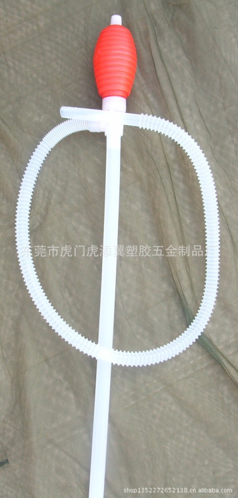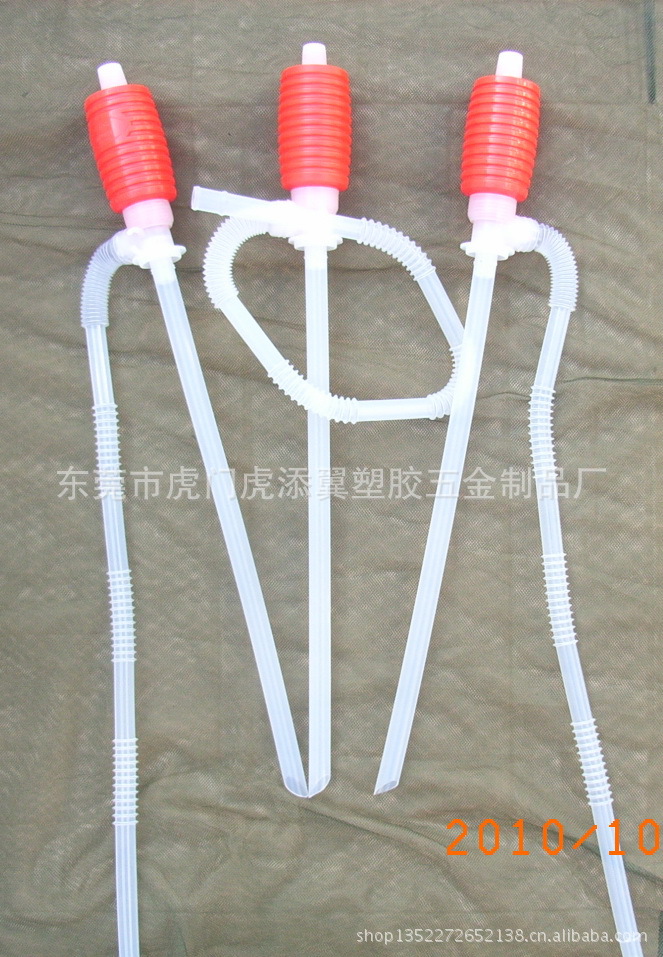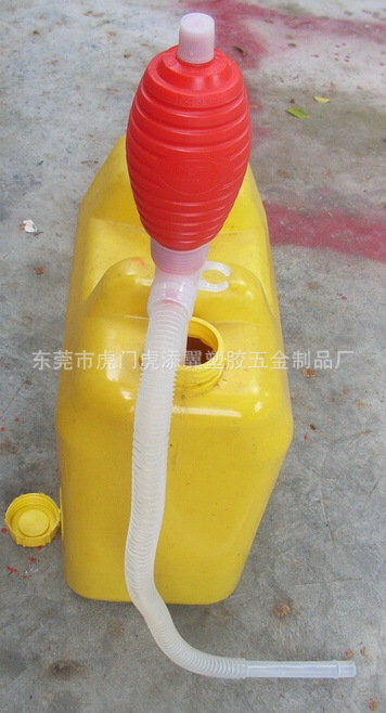 商品名:塑料油抽、油泵型号:大,中,小三款!注:我司有多款油抽现成模具,及完成品,可以直接生产,或供货。价格可面议,欢迎各界朋友前来参观洽谈,谢谢!!!使用功能:1,手动塑胶油抽(油泵)是高品质耐腐蚀产品.适用于淡水抽取,化工液体及大油桶与小油桶的抽取.。使用更方便,保管更卫生。使用注意:1、不可让儿童接触或玩耍。2、禁止抽取强腐蚀性液体。3、禁止拉扯产品配件。4、产品破损会导至液体外泄,产品失去使用功能。使用说明:1.使用前首先将产品顶端白色气阀帽扭紧。2.将产品吸入管浸入母容器液体中,输出管放入分装容器中。3.连续捏压泵心,直到泵出液体为止(分装容器液体面需低于母容器液体面高度。当母容器液体面低于分装容器液体面时,需手动抽出余下液体)。4.当要停止抽取时,提前扭松产品顶端白色气阀帽,进气后即可自动停止,但注意输出管内残留液体外溢。5.附使用操作图示: