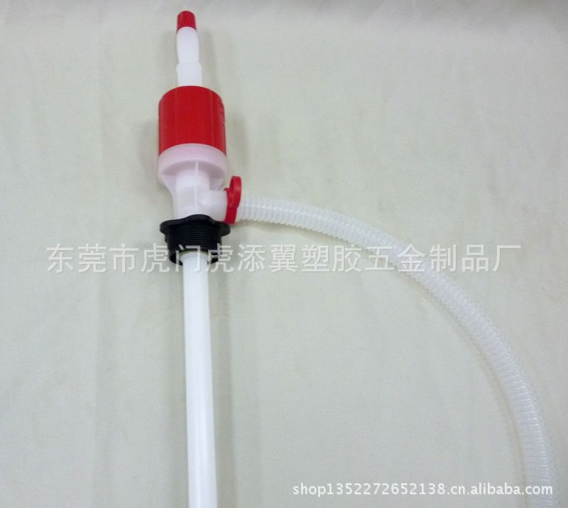 商品名:塑料油抽、油泵型号:大,中,小三款!注:我司有多款油抽现成模具,及完成品,可以直接生产,或供货。价格可面议,欢迎各界朋友前来参观洽谈,谢谢!!!使用功能:1,手动塑胶油抽(油泵)是高品质耐腐蚀产品.适用于淡水抽取,化工液体及大油桶与小油桶的抽取.。使用更方便,保管更卫生。使用注意:1、不可让儿童接触或玩耍。2、禁止抽取强腐蚀性液体。3、禁止拉扯产品配件。4、产品破损会导至液体外泄,产品失去使用功能。使用说明:1.使用前首先将产品顶端白色气阀帽扭紧。2.将产品吸入管浸入母容器液体中,输出管放入分装容器中。3.连续捏压泵心,直到泵出液体为止(分装容器液体面需低于母容器液体面高度。当母容器液体面低于分装容器液体面时,需手动抽出余下液体)。4.当要停止抽取时,提前扭松产品顶端白色气阀帽,进气后即可自动停止,但注意输出管内残留液体外溢。5.附使用操作图示: