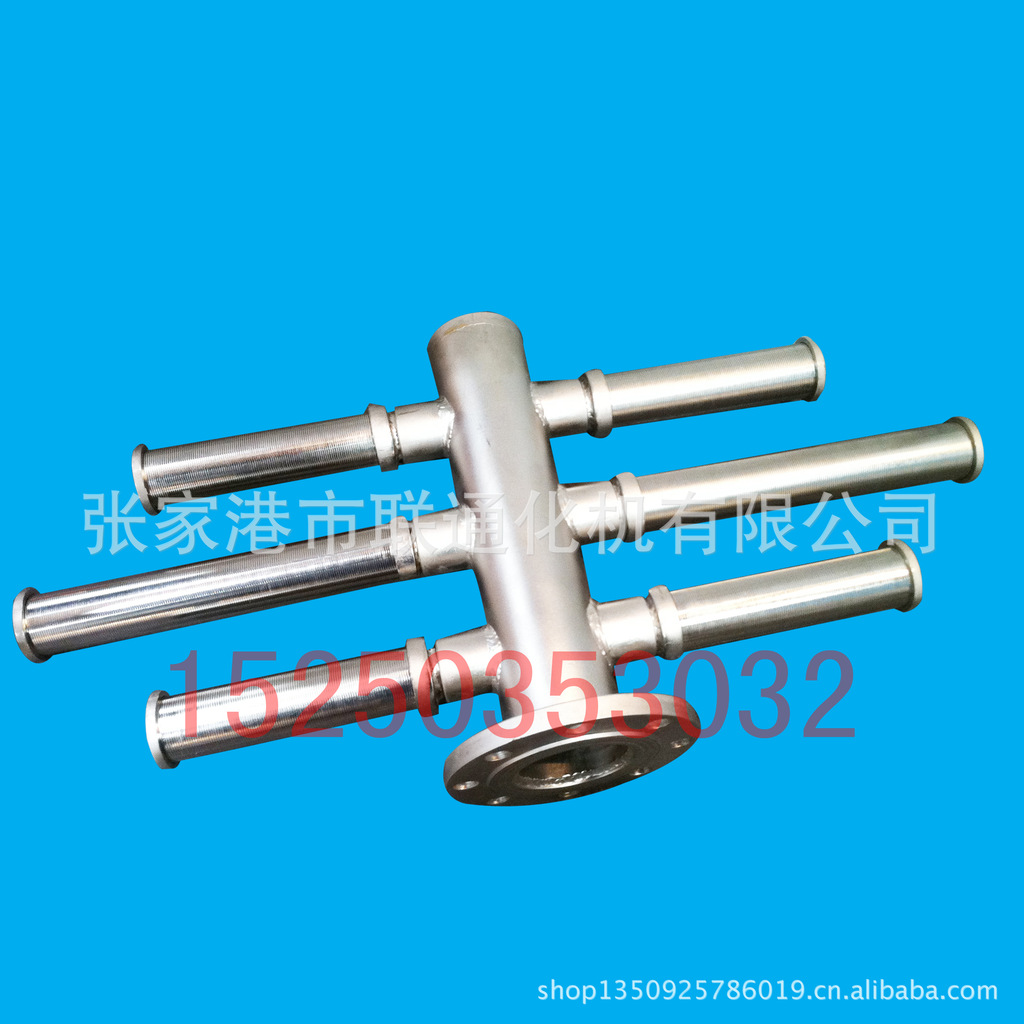 传统进水装置常常会发生在进水装置处跑掉大量树脂。不锈钢V型绕丝进水装置可代替原有传统的进水装置,既可保证足够的反洗强度,冲洗掉悬浮物及不合格破碎树脂胶沫,又能截留合格树脂,并能到到分布合理的流通面积。产品有直管式、一字支管式、十字支管式等系列。