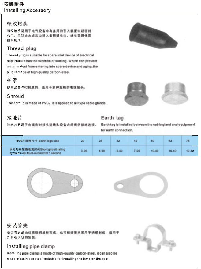 安装附件(螺纹堵头、护罩、接地片、安装管夹)